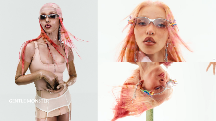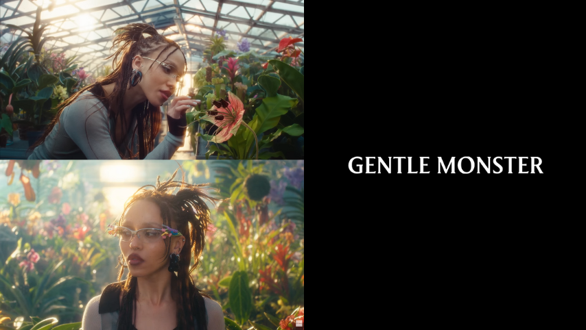 這次 Gentle Monster 全新「BOUQUET」系列的視覺呈現,特別邀來了前衛藝術家FKA twigs與影像名導Jordan Hemingway聯手打造。這支短片不僅是產品展示,更是一場關於身體美學的深度實驗——透過FKA twigs極具張力的肢體與髮型轉換,生動地演繹了生命從沉靜生長到狂熱綻放的迷幻過程。